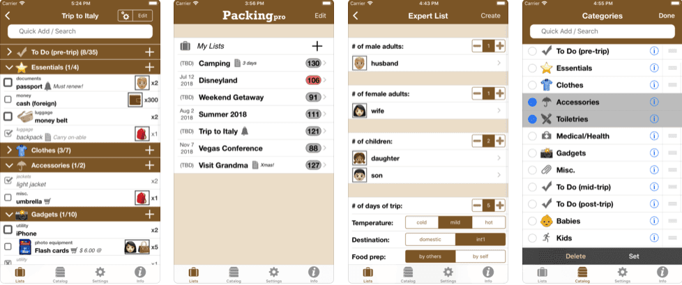 Once you have planned your trip it’s time to pack your bags. With Packing Pro app you can pack your bags and organize everything you’ll be needing for the trip. Begin with giving details to the app regarding the days to stay, where are you going, how’s the weather there. You can further add other information like if you’re planning to go swimming or will there be a washing machine. The app will provide you a whole guide as to what necessities will you be needing from clothes to slip on to other necessities.