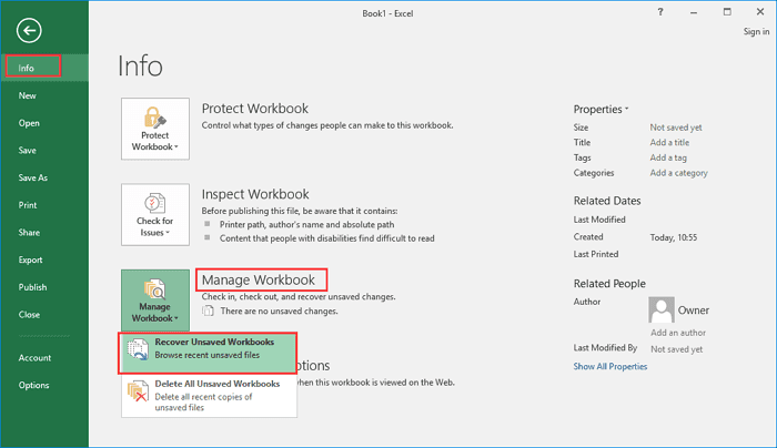 Recover Unsaved Workbooks