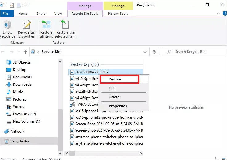 Check The Recycle Bin