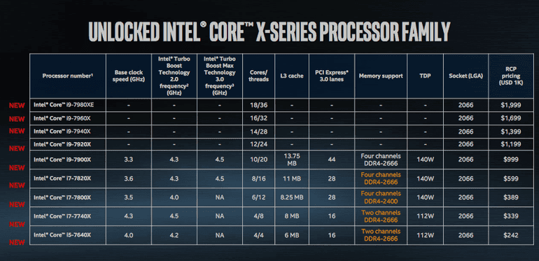 As well as the Core i9, Intel has lifted the top of the new X-Core high-performance CPU series.