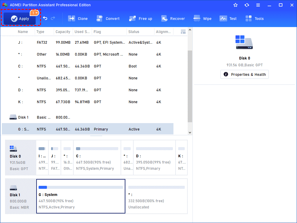 Step 4. If everything’s fine, click “Apply” > “Proceed” to execute it.